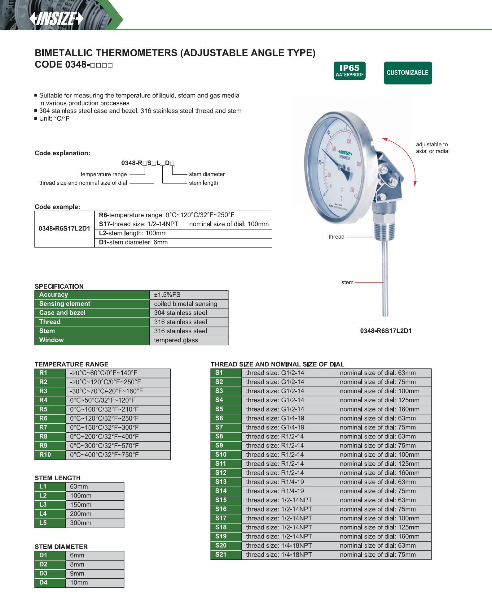 Bimetallic Thermometers (Adjustable Angle Type)